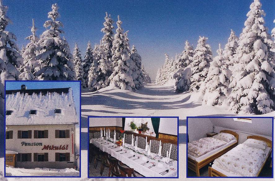 Pension Mikuláš je útulný rodinný pension nacházející se v srdci Krušných hor, v malebné obci Mikulov. Díky své poloze v nadmořské výšce 605 m nabízí ideální podmínky pro zimní sporty i letní turistiku.