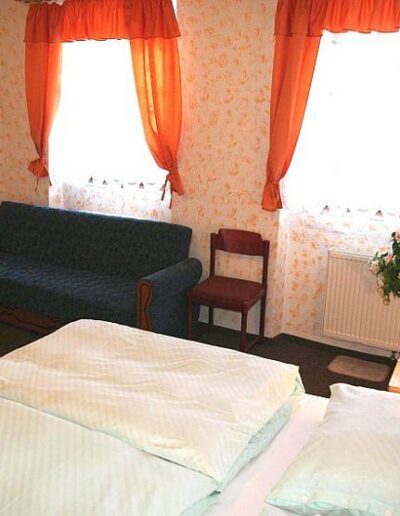 Ubytování v útulných pokojích s možností přistýlek i dětských postýlek.
