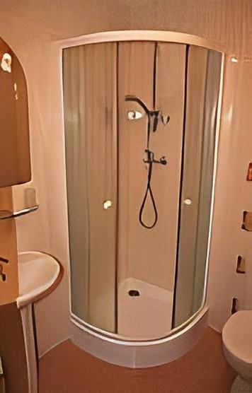 Každý pokoj má vlastní koupelnu se sprchou a toaletou.